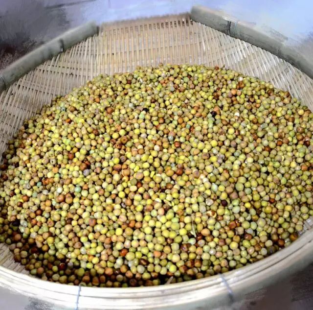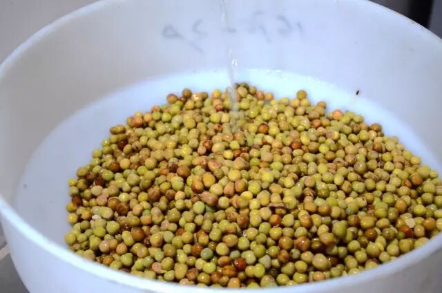 制作一份好凉粉,先从泡豌豆开始。整整16斤的干豌豆,要泡到如此饱满才能磨制。![]()
