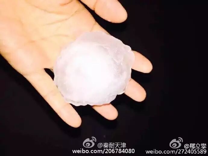 据家住汉沽区的杨先生说,他的两个朋友在鲤鱼门的小港口渔船上值夜,大概凌晨两点多,突然就下起的大冰雹,满海就像扔“板砖”一样,大的有拳头那么大。