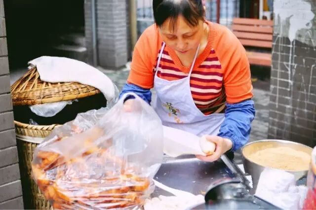 这家早点摊是一对聋哑的老夫妻开的,就在磁器口车站附近,一般都会摆到上午11点左右。价格就用牌牌写好了放在桌上,其实卖熨斗糕并赚不了几个钱,但老爷爷老太太这种生活方式实在让人敬佩。
