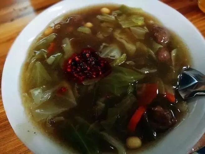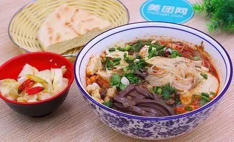 肉丸糊辣汤,吃的时候淋上油泼辣子及香油。及手掰的坨坨馍。味道独特。肉丸胡辣汤源自西安,可以说是蔬菜牛肉丸子汤,或者说是牛肉丸烩菜,但是区别于外地的是汤要勾芡。汤里有浑圆的牛肉丸子,切成块状的土豆,莲花白,胡箩卜,菜花、芹菜等。先用牛羊骨熬汤,下牛肉丸,烩菜,最后勾芡而成。