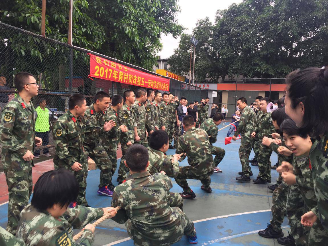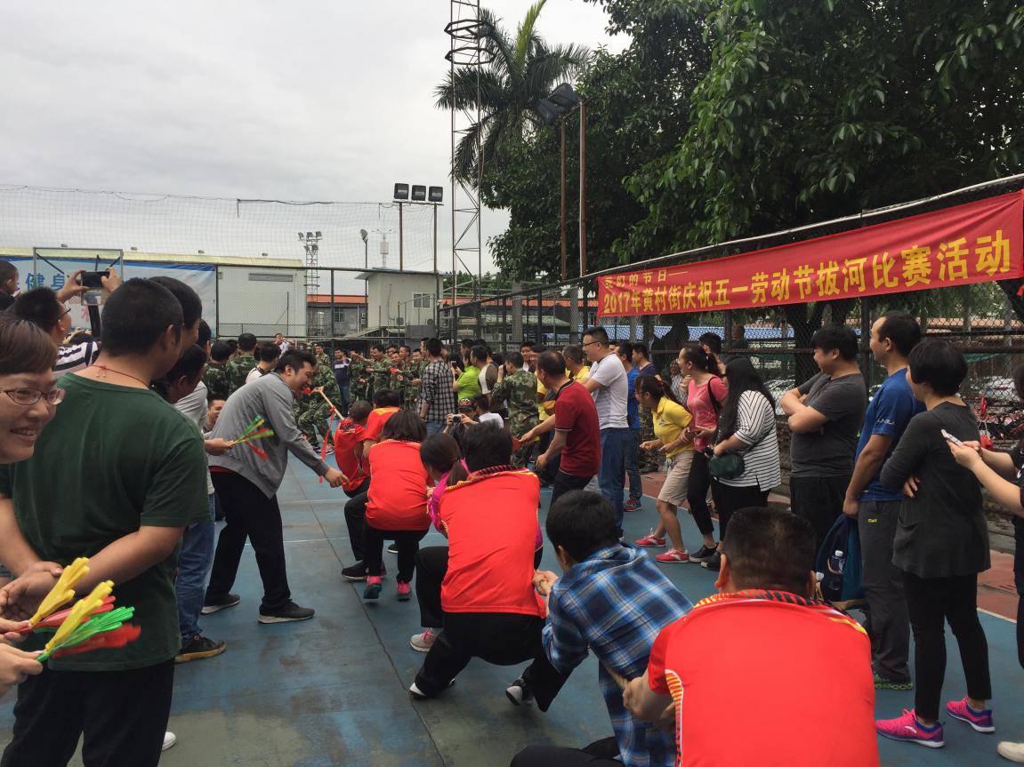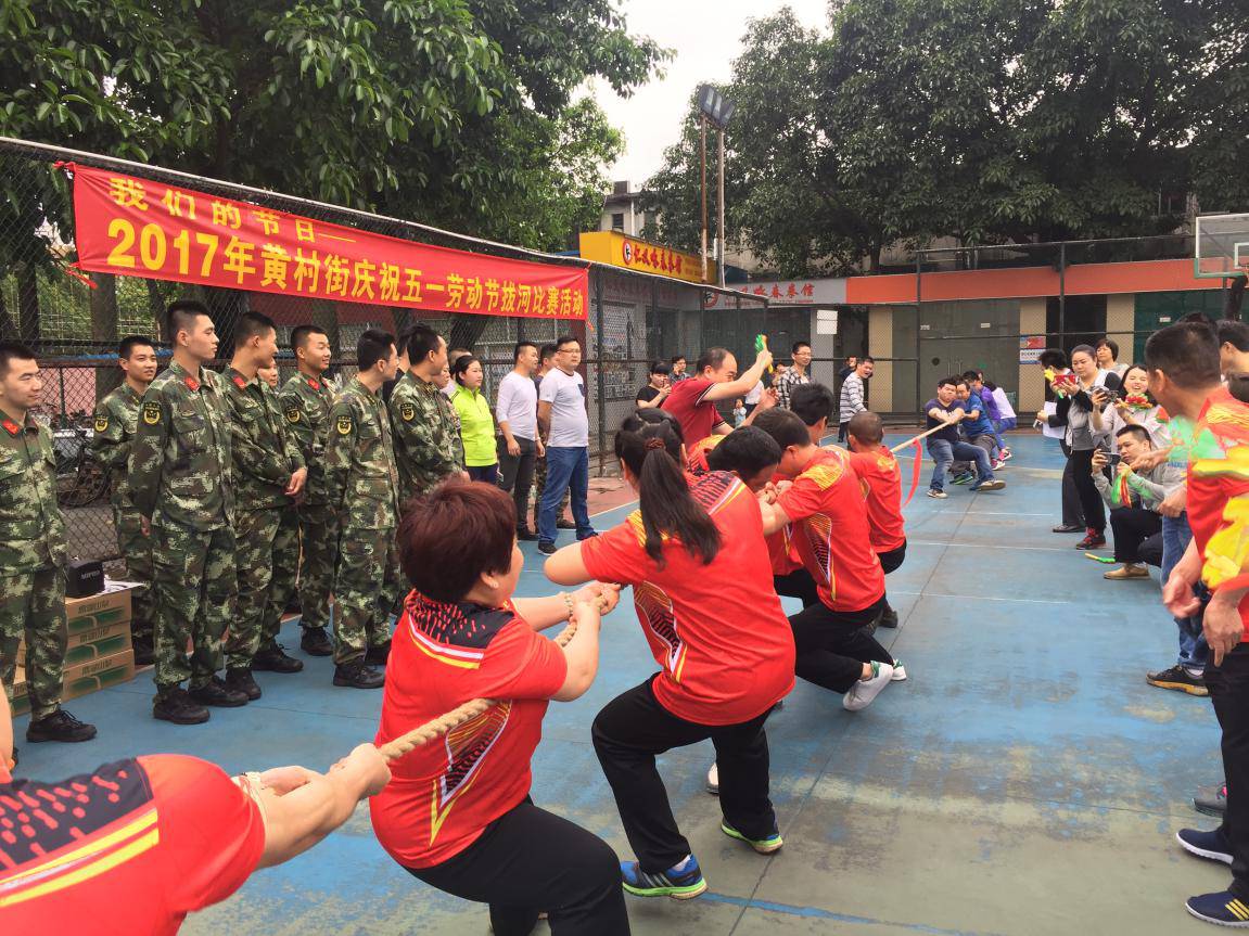 原来由黄村街党工委、办事处主办,黄村街文化站、黄村街商会承办的“2017黄村街庆五一拔河比赛”正在进行,现场角逐十分激烈,观众们也热情高涨,鼓掌声、加油声、欢呼声连成一片。