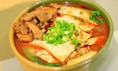 你好吃粉汤羊血,可以单走,馍汤分开,也可以像吃泡馍一样先掰馍,制作上应该叫“泖”,和葫芦头的做法类似,大师傅手持一碗掰好的馍,加入焯过的羊血和粉丝,不断将高汤浇入碗中再滗出,反复数次,至馍泡软,加上豆腐、调料,味道麻辣咸香,食之过瘾。