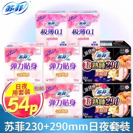 【苏菲 柔棉感日夜用组合套装卫生巾 54片装,包含日用10片装*4包、夜用5片装*2包、日用极薄2片装*2包。10元券后37.9】复制这条信息,¥0skA0kXmvqM¥ ,打开【手机淘宝】即可查看