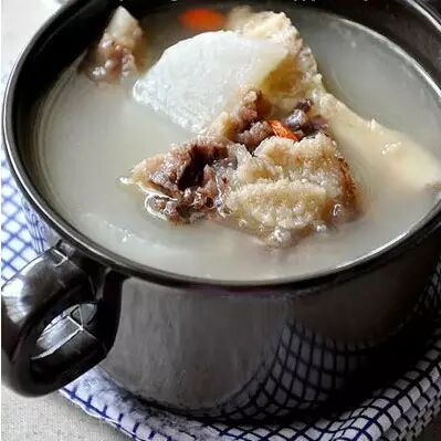 4、顿三小时后下萝卜小火炖一小时加枸杞盐焖10分钟即可,