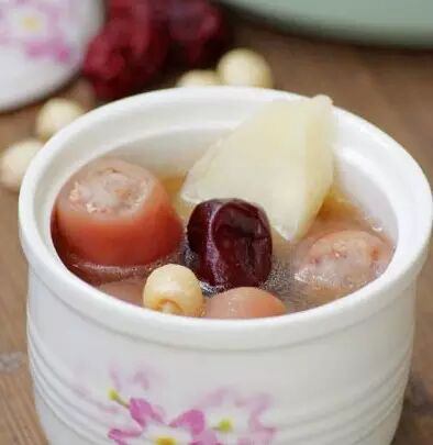 原料:猪尾、莲子、淮山、红枣、姜,盐。