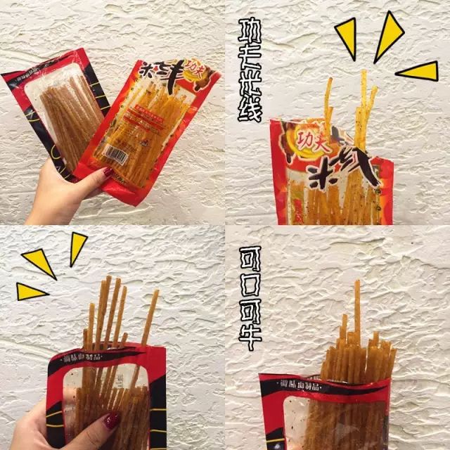 功夫米线:辣条中的战斗机,居然能入口即化??夸张一点来说,确定这不是泡沫嘛~放进嘴巴里就散开了!跟棉花糖似的!