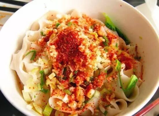 油泼面,汉族传统风味面食,陕西很有特色的一种主食。据说已有3000多年的历史。油泼面是在周代“礼面”的基础上发展演变而来;秦汉时代称之为“汤饼”,属于“煮饼”类中的一种;隋唐时代叫“长命面”,意为下入锅内久煮不断;宋元时代又改称为“水滑面”。据元代韩奕所著《易牙遗意》记载:“水滑面:用十分白面揉搜成剂。一斤作十数块。放在水中,候其面性发得十分满足,逐块抽拽,下汤煮熟。抽拽得阔薄乃好。”