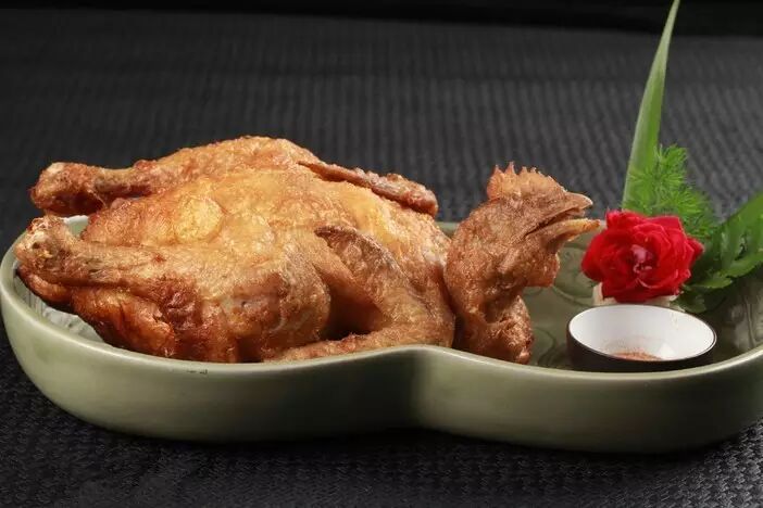 是西安传统名菜,又名囫囵鸡。据传,葫芦鸡的创始人是唐玄宗礼部尚书韦陟的家厨。韦出身官宦之家,很讲究菜肴。一次命家厨烹制酥嫩鸡肉,前两个厨师均未成功。第三个厨师吸取前者的经验,把鸡捆起来,先煮,后蒸,再油炸的,做出来的鸡不仅香醇酥嫩,而且是整鸡,传说中的长安第一味。