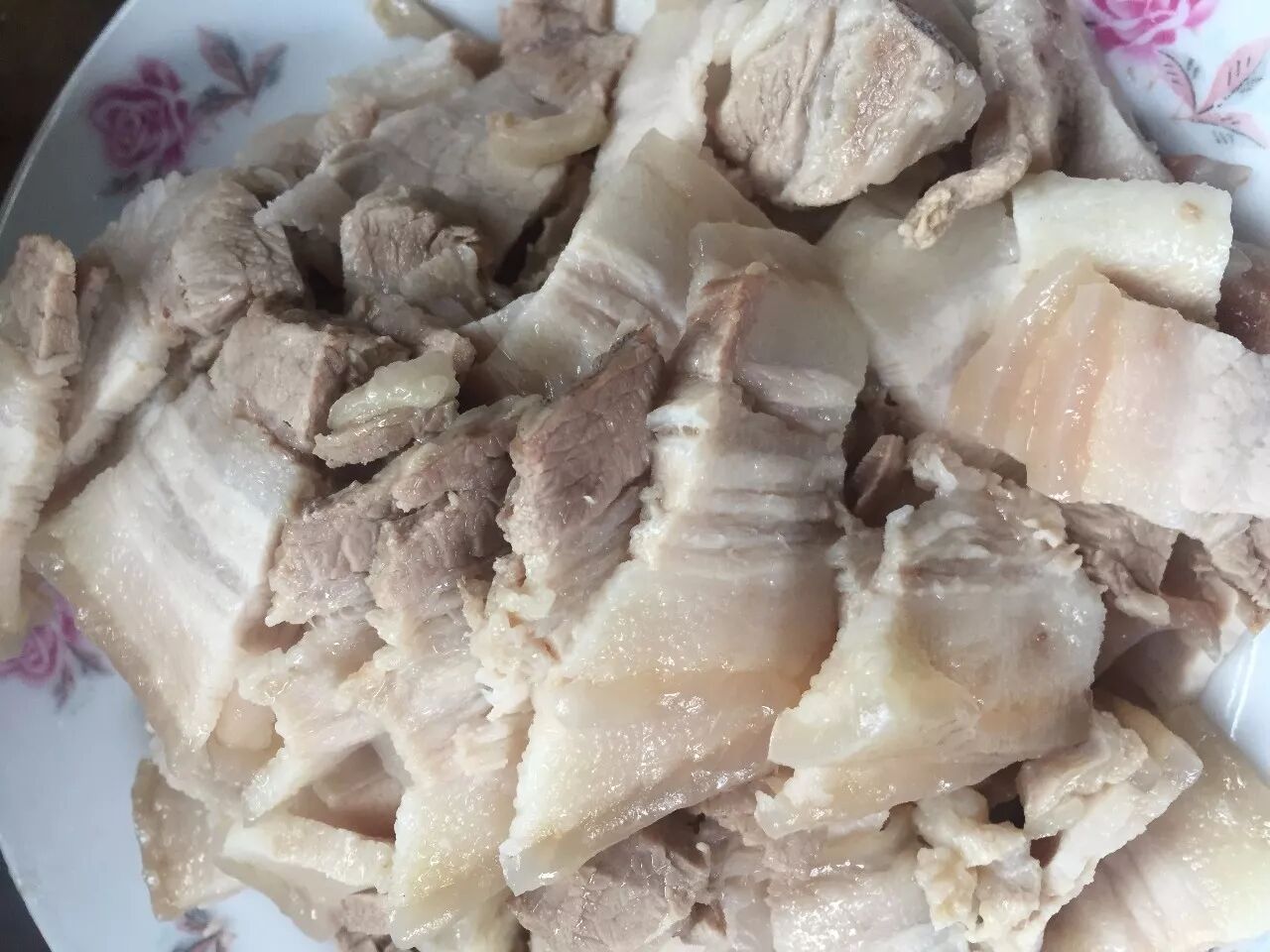 1.首先我们准备一块五花肉,接着放水在锅里再把肉放进去煮,等到煮熟了就拿出来
