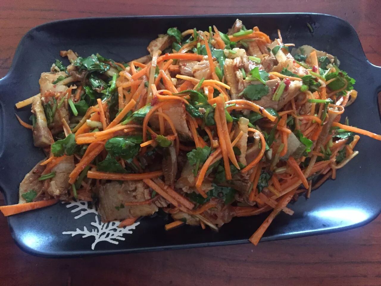 今天小夕带来这道菜是凉拌肉,准备食材有:猪肉,胡萝卜,蒜,香菜,下面就是做法