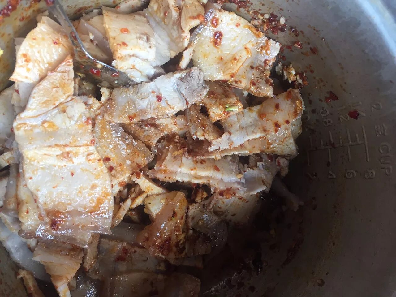7.之后再放入白糖,醋,生抽,盐,味精,在搅拌均匀,这道凉拌肉就做好了