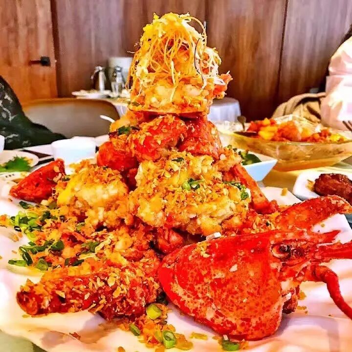 特别吸引我眼球的就是这道类似于避风塘炒蟹的 龙 虾 大 餐 。从尾部剔出来的滑嫩虾肉,加上大量蒜蓉大火爆炒。入口能吃到虾肉的甘甜焦香,蒜蓉脆而不煳,美味难挡。