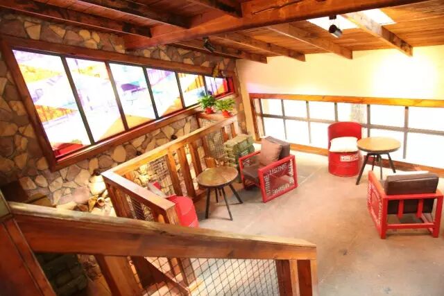 设计师利用了废旧材料在酒店的各个角落,旧报纸装饰而成或柱面、或墙体、或吊顶造型、或装饰画,还是那废弃材料改装成的艺术品,都有着匠心独具的设计感。春秋舍追求复古、个性时尚的特点,然而它的复古时尚又是独特与不可复制的。