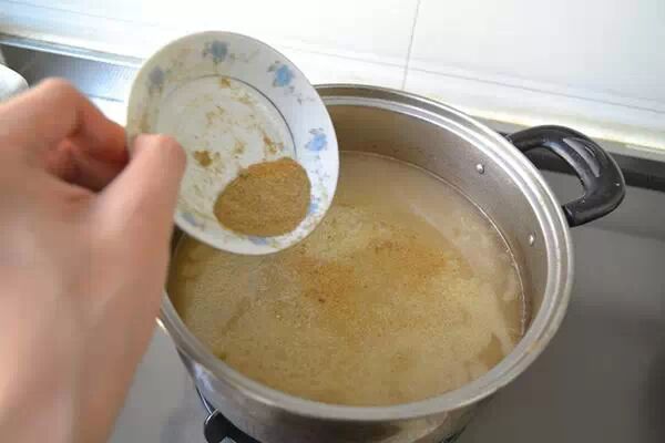16.汆丸子的肉汤中下人两小勺花椒粉,这个要麻,所以适量多些,可以根据自己口味调整