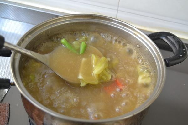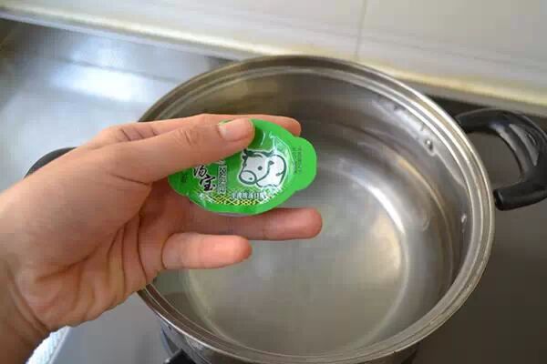 11.锅中座水,下人牛肉浓汤宝,盐和鸡精调味,当然有牛骨头汤是最好不过的