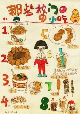 狼牙土豆、烤红薯、冒菜、铁板烧、锅盔、奶茶、麻辣烫、烧烤、刨冰……
