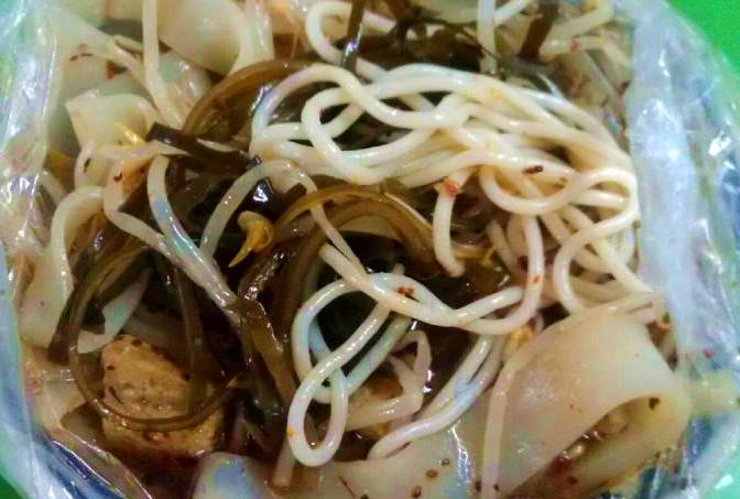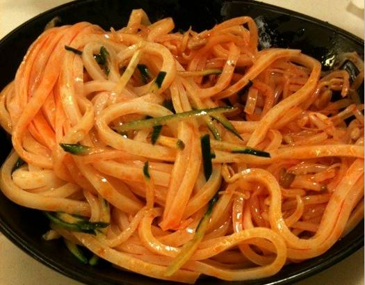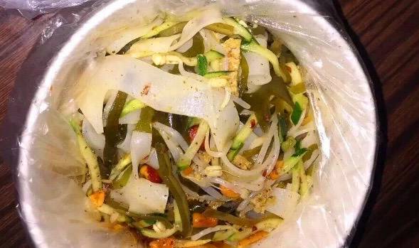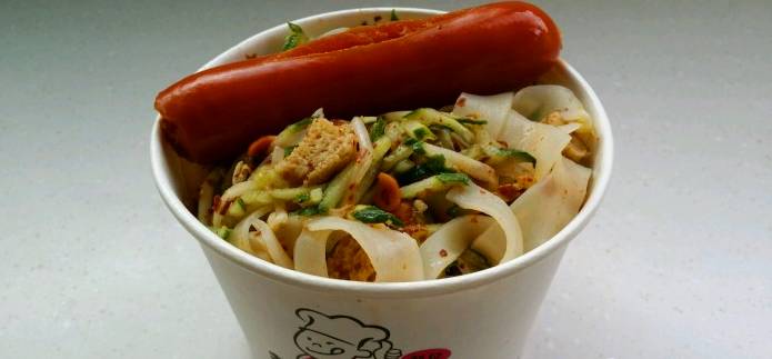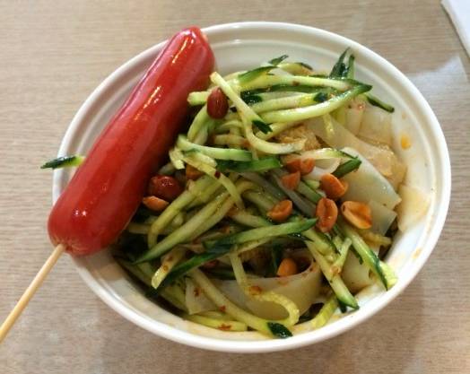 秘制涼皮和我们平时吃的那种传统的凉皮完全不一样,口味筋道,而且里面的配料也很赞,有面筋,西兰花,黄瓜,面食和蔬菜的完美搭配,既营养又好吃!推荐大家都去尝一尝哦!