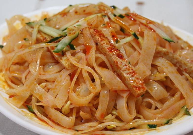 在合肥,说到凉皮第一想到的是周贵妃凉皮,作为合肥的老字号了。周贵妃的凉皮绵软润泽,光滑细腻,配上滚水焯过的豆芽,再加上酱油、醋、蒜泥、味精、麻油、辣椒等特制调味汤料,最后再浇上一勺热醋,口感极佳!