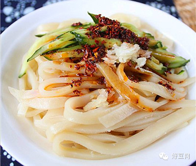 麻酱凉皮:在陕西很受欢迎,以芝麻酱为主要调料的凉皮,做法较简单,吃起来满口溢着芝麻的香味,这货夏天可受欢迎啦!!