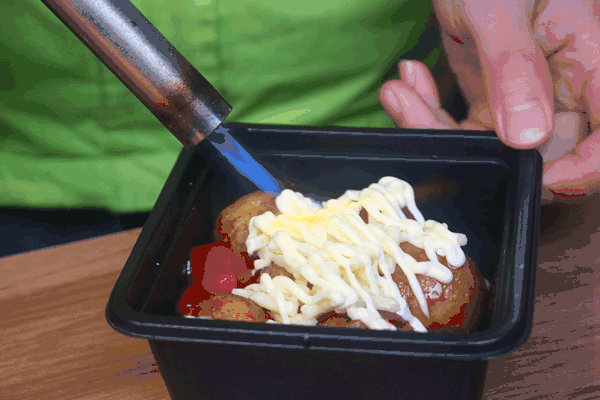 芝士的章鱼小丸子翻牌率超高,这么受欢迎的原因也很容易就懂,火炙后的芝士香气四溢。金黄的小丸子和里面的大粒章鱼,让来逛街的小嫚儿总是想尝上一口。