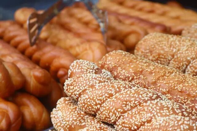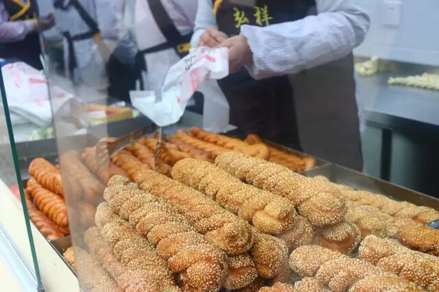 大姐在柜台里熟练的装大麻花,带芝麻的和不带芝麻的。小编喜欢吃不带芝麻的,带回家热一热觉得更好吃。