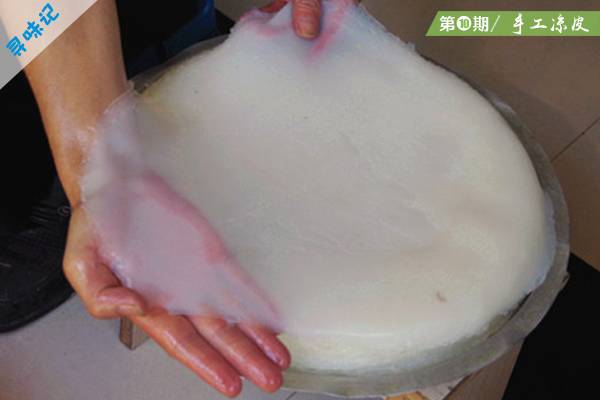 凉皮的主角就是这张半透明的面皮,自古以来,主角光环都不容忽视,所以这凉皮中的面皮究竟是如何制成的?你一定很好奇。如果你是一位从没了解过凉皮制作工艺的吃货,你可能会误以为这一张张面皮像菜市场里卖的饺子皮似的,由机器搅拌加工而成,实则不然。