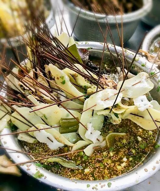 从来不缺客人的一家店,晚上10点去,人还打堆堆坐满堂,有啥秘诀?又好吃,还巨便宜的良心店。几个大钵钵放在门口,藤椒味,麻辣味,要吃啥你就自己去拿。去骨的鸡爪,放在汤料里,你只管拿起来,放肆地一口咬下去~~小郡肝也很好吃,素菜最喜欢土豆片,非常脆爽。