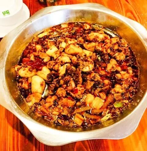没人带很可能错过的一家店,本来位置够隐蔽了,店还开在茶楼里面。口味偏自贡菜,重口味不解释。装菜的盘子跟洗脸盆差不多大,最喜欢啊香辣脑花,满满一大盆,分量很大,脑花很嫩,又入味,过瘾。点份脑花还不够,因为他们家好吃的菜有点多,脑花第一,蛙第二、第三就是兔兔啦~~~