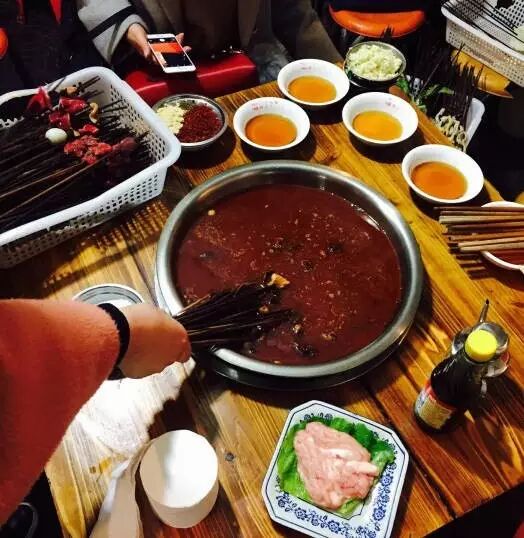 去这家要做好心里准备啊!非常挤,又常常爆满。冒菜是一份份卖的,一份荤菜,里面有配好的素菜, 品种很多。麻辣牛肉很嫩,虾饺也很好吃,再来一份火锅粉,两个人,轻松光盘。牛油锅底,吃起来很香~~果然冒菜就是一个人的火锅。
