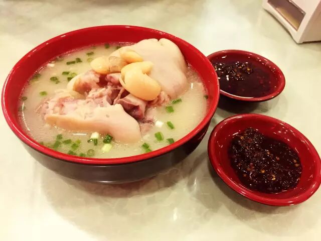 据说是开了十几年老店,招牌鱿鱼土鸡汤,鱿鱼、土鸡,一个地里走,一个海里游,最终相遇在锅里,汤格外鲜美。鱿鱼炖得很耙,鸡肉也比较嫩,里面可以煮蔬菜,萝卜、藕片煮到锅里很清甜。觉得清淡的朋友,可以蘸着酱吃~~~