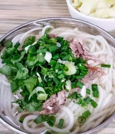 这家羊肉米线是粗米线,羊肉味浓,羊肉没有膻味,吃白味就很好吃。自己加盐,桌上有剁椒和糊辣椒面可以加。