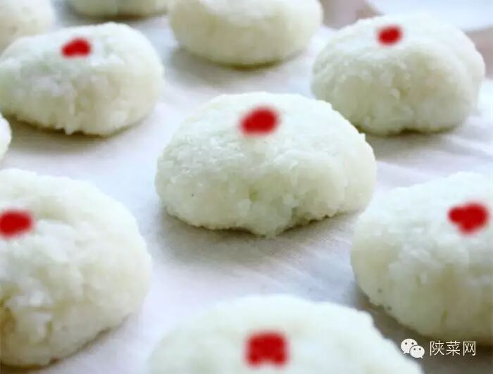 最后开始制糍糕。案上抹一层油,取糯米团一块,先搓成条,再揪成每个重约50克的剂,揉圆拍平,包入豆沙馅约20克,收口压成直径约6厘米、厚约2厘米的圆形饼。撒上芝麻少许,即成糍糕。![]()