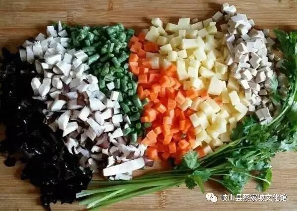 相传周文王时期,在岐山原下渭河畔,常有一条大蛟龙出没,伤害百姓。文王得知后,便下令除掉了的蛟龙。据传说,蛟龙的肉味道鲜美,吃了可以驱恶除邪,延年益寿。于是,文王叫人将蛟龙剁成许多小块,另给众人食之。吃了蛟龙肉,部落从此繁衍生息旺盛,人们体格健壮,使使部落逐渐壮大了起来。从此,人们沿用这一生活习惯,将肉食剁成小块,烧炒而食,以求得四季平安,兴旺发达。
