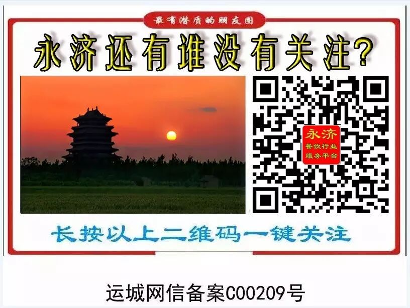 永济餐饮行业服务平台——不只在永济,不只限餐饮,我们就是你最佳的生活助手。点击标题下蓝字免费关注,我们每天将为您提供有价值的行业信息、有意思的延伸阅读。