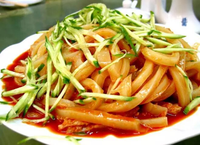 咥凉皮奏不饿:豆芽哦,辣子哦,辣滴很,辣哦。