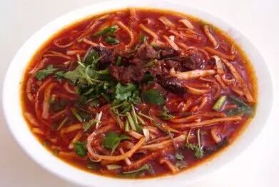 在陕西铜川耀州人的饮食中,最以咸(han)汤面、荞面饸饹和窝窝面久负盛名,被誉为耀县“三面”。和名满三秦的岐山哨子面比起来,咸汤面则知名度小得多,只在当地受欢迎,并没有打出铜川,走向三秦。据说,老舍先生当年途经此地,吃了咸汤面,盛赞“小小耀县,竟有北京饭店”。如今,外地人盛传“不吃三碗面,不算行耀县”。