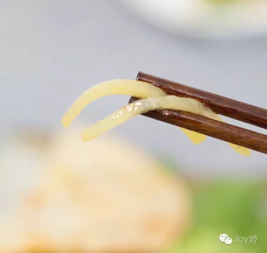 酸辣土豆丝重点不在酸辣,而在丝。非常考验刀工的一道菜,丝细长而不能断,入锅翻炒便晶莹剔透。