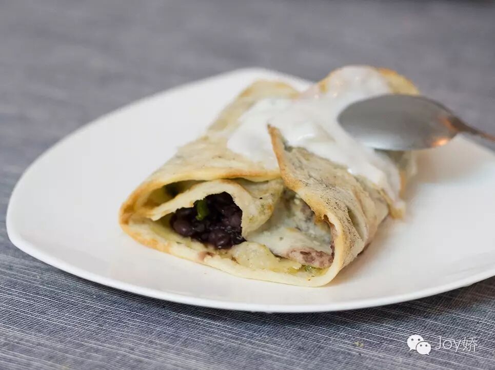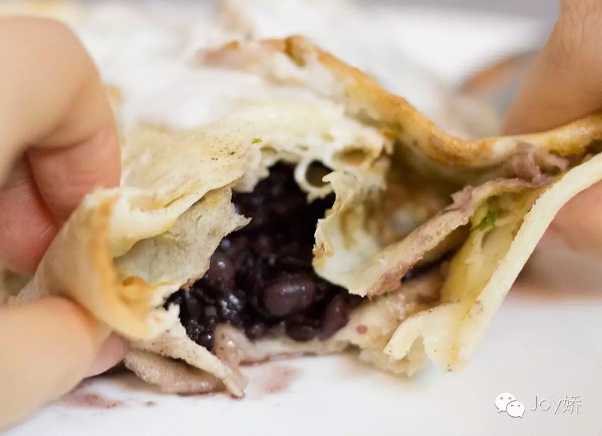将温凉的紫米红豆粥灌入锅盔的口袋里,待浓稠的粥将锅盔胀成鼓鼓囊囊的样子,折起边角,再浇上浓稠的果粒酸奶,是不是很萌呆?