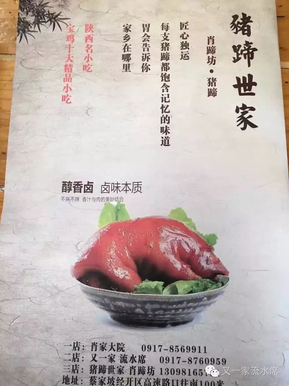 2014年,他又在肖家大院对面的商业广场买了600平米左右一层门面,装修后取名“又一家流水席”。流水席在西府民间随处可见,为做出特色,他在肖家大院经营品种不变的前提下,改变了经营模式,采用明档展示,各档口绩效考核,每月菜品的流水都在70到80万元。这一切,也是由酱猪蹄带动的。
