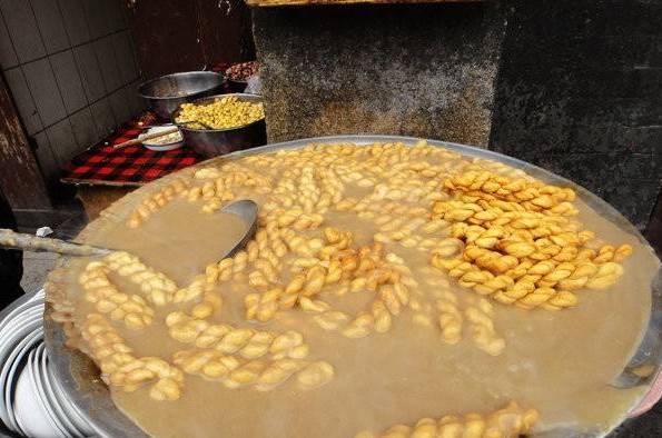 其实咱们吴老爷这是在吃咸口儿的油茶麻花呢!