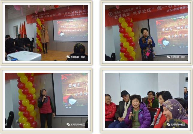 最后,大家一起表演节目,在社区李师傅的提议下,为纪念逝世四十二周年,大家合唱《绣金匾》,随后孙阿姨、沙师傅、邓师傅等居民纷纷表演节目葫芦丝、二胡独奏、秦腔等等形式,大家越唱越带劲,一首南泥湾和我的祖国更是点起全场热情,大家一起唱出美好生活。