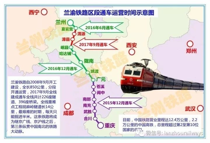 9月29日,兰州至重庆铁路夏官营至岷县段开通运营,这标志着兰州至重庆铁路全线贯通。