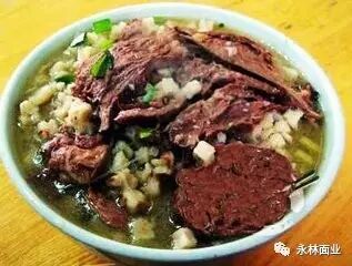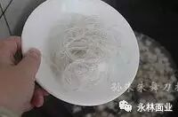 18.放入粉丝和切成片的熟羊肉(逆着肉丝切,如果牙口不好就切成和馍丁一样大小的小丁),用盐、胡椒粉调好味
