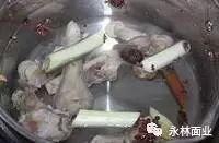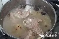 16.锅中倒入半碗羊肉浓汤,再倒入半碗清水