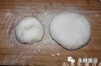 8.将面粉取出1/10的量放入酵母和温水合成稍微硬一点的面团放在温暖处发酵;将剩下的面粉放入盆中放入食用碱用凉水和成稍微硬一点的面团