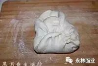 9将死面面团擀开,将发好的发面面团放到中间包起来揉成一个完整的面团,静置10分钟