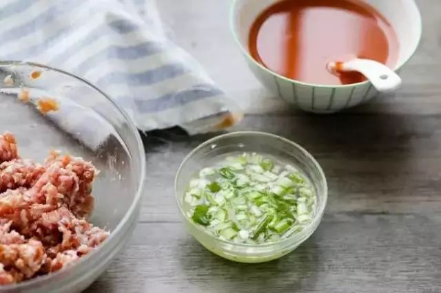 拌肉用料:玉米淀粉15克、盐3克、酱油1/2勺、 芝麻油1/2勺、姜、蒜末10g、温水30g、碎洋葱1个;
