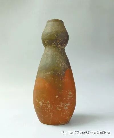 根据资料,葫芦的种植有七千年的历史。仰韶红陶葫芦形瓶正是在历史的长河中形成的,而在五千年前,正是我们的远古先人从愚昧走向文明之时,那时的社会正处于母系社会晚期,当时原始人群烧制出的许多陶器都是以形状来表达愿望的。那时的原始人们对母性生殖崇拜和延续子孙的愿望强烈,而葫芦的形状和特点恰可以满足这种心理上的要求。所以也有学者认为早期的葫芦形状还带有生殖崇拜的特征,这件仰韶葫芦形瓶也许可以作为一种佐证。