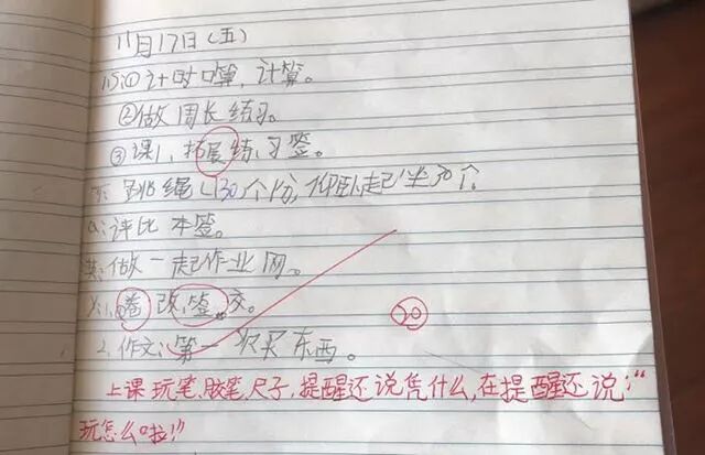 这是他儿子的同桌,在他儿子的作业本上写的一句话。原来,这所学校实施“保甲连坐”制度,要求学生互相监督检举揭发,做老师的好孩子,“拿红笔的党卫队”。