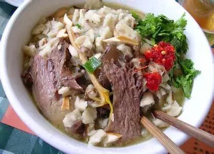 羊血泡馍河粉汤羊血较之羊肉泡馍、水盆羊肉便宜,以前是很多苦力者果腹的大餐(一般都碗大如盆),羊血泡馍是辣子蒜羊血的变化之一,其最大的特点就是“辣”可以称得上是泡馍系列最辣的,一般人不敢吃。吃完就像洗了一遍桑拿一样。